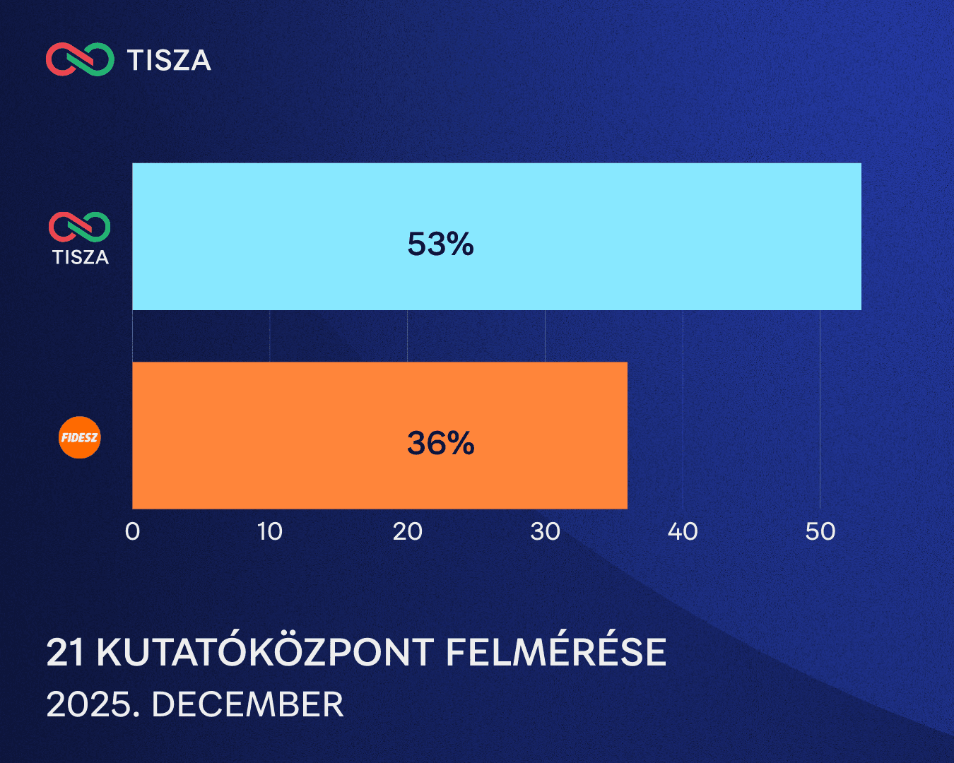 A 21 Kutatóközpont legfrissebb közvélemény-kutatása szerint a TISZA történelmi előnyre tett szert: a biztos pártválasztók körében 53-36 arányban vezet a Fidesz előtt. Amit most látunk egy tartós politikai és társadalmi folyamat eredménye.